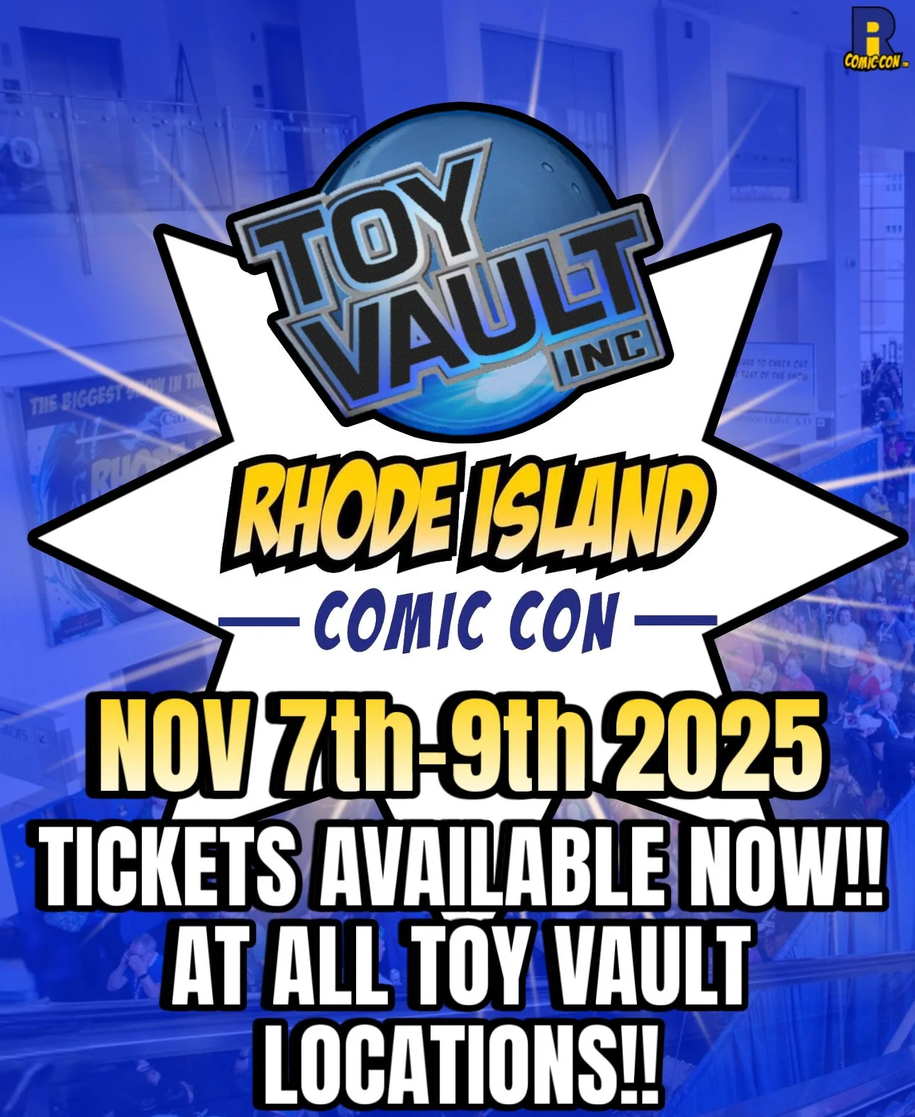 Rhode Island Comic Con Tickets are on Sale Now!! We Have Friday, Saturday, Sunday, Weekend and VIP Passes in stock!! Available at any ToyVault Locations!! Rhode Island Comic Con is a three-day comic convention held during November at the Rhode Island Convention Center, Amica Mutual Pavilion, and Omni Providence Hotel in Providence, Rhode Island. The convention was Rhode Island's first Comic Con.